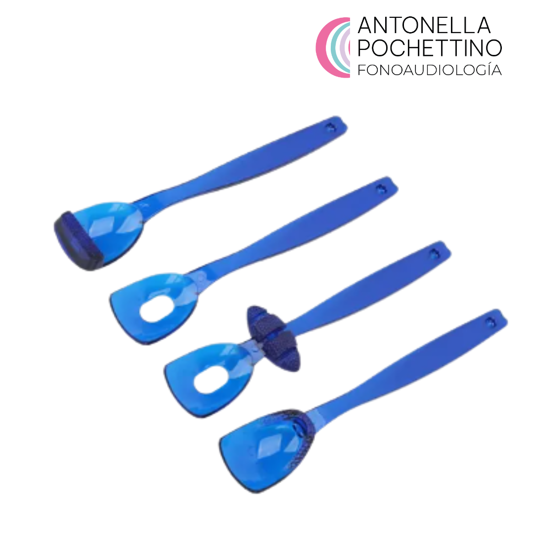 Cada guía cuenta con un mango y un dispositivo cóncavo en el extremo, que incorpora distintas saliencias y formas específicas para realizar ejercicios isométricos, isotónicos y funcionales, enfocados en distintos grupos musculares de la región orofacial.