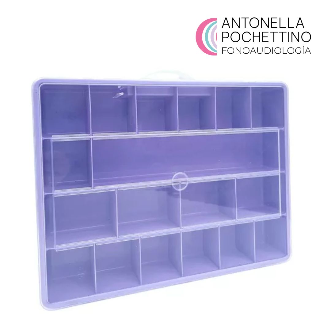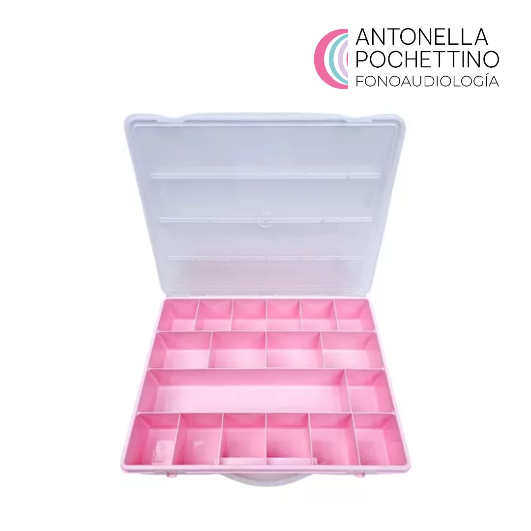 Perfecto para profesionales de la fonoaudiología que requieren mantener sus materiales terapéuticos bien organizados y transportarlos de manera segura y organizada entre distintos consultorios.